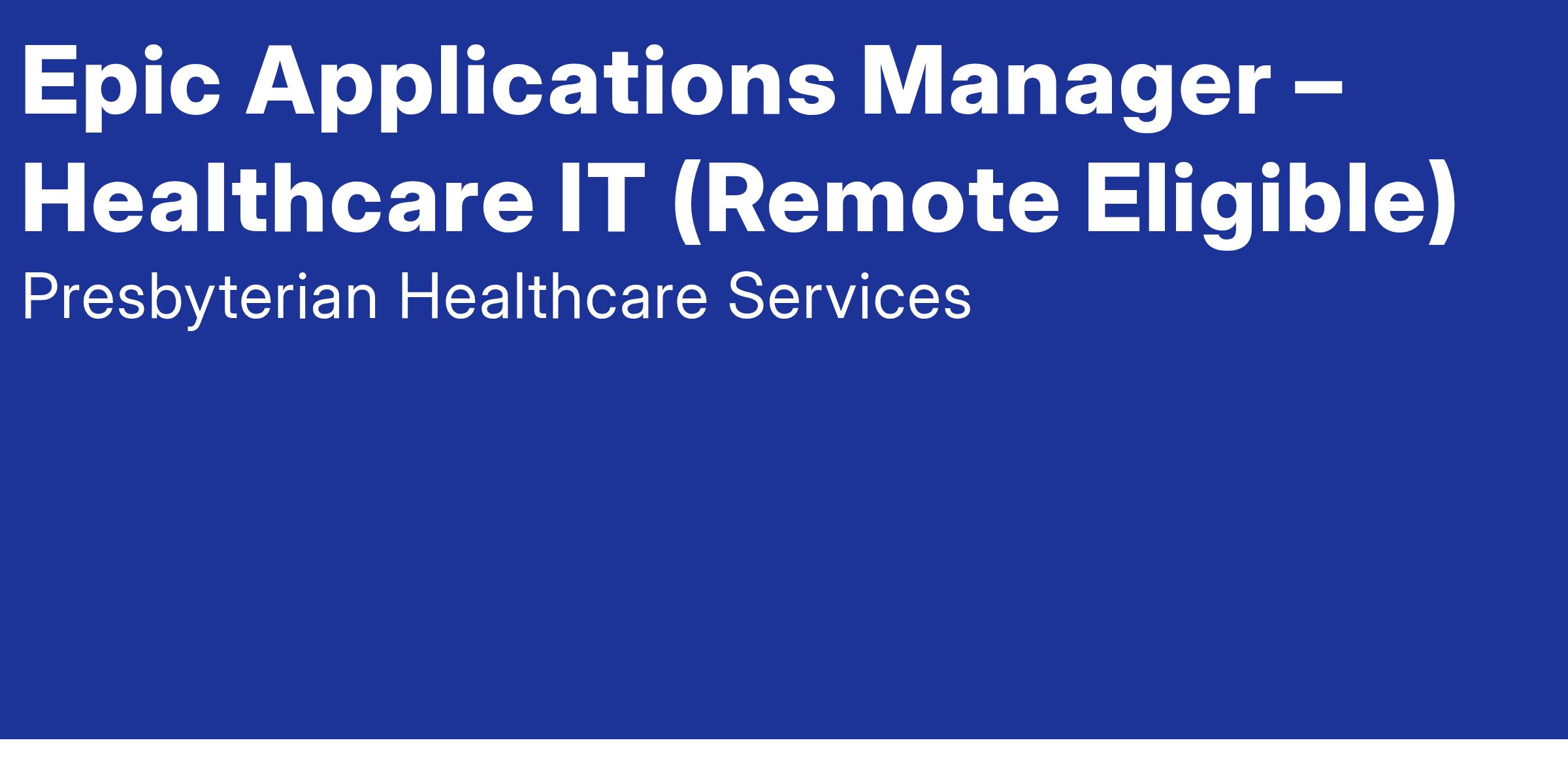 Presbyterian Healthcare Services is seeking an IT Epic Manager to oversee the management, support, and optimization of key Epic applications. This role is a critical leadership position responsible for delivering high-impact IT services, ensuring system stability, and aligning application strategy with enterprise goals.