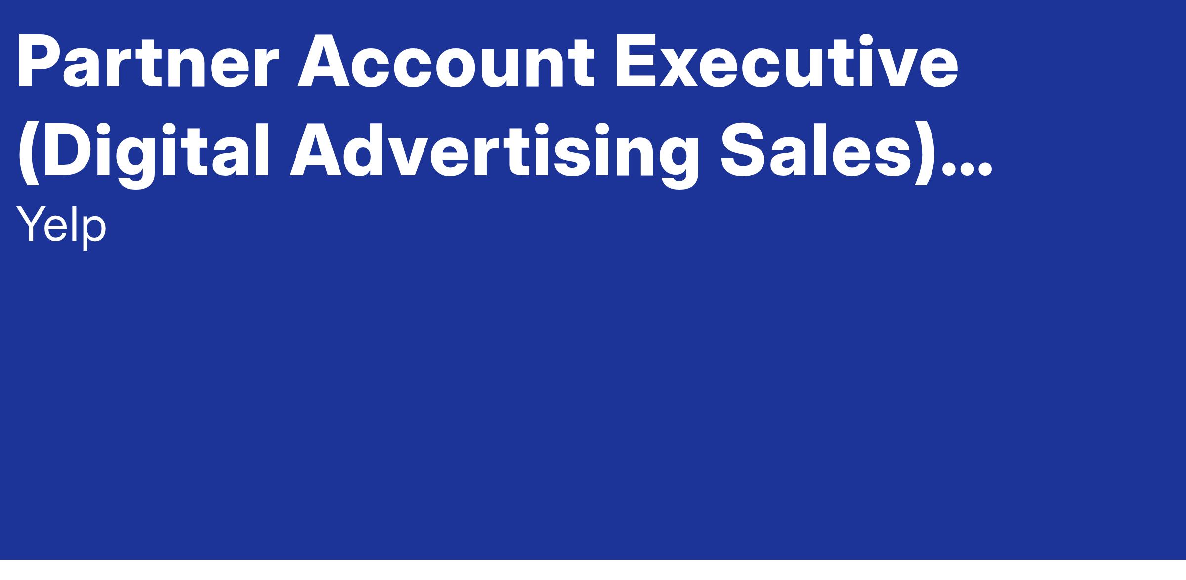 As a Partner Account Executive, you’ll be on the front lines of Yelp’s growth, pitching our advertising solutions to digital marketing agencies that want to help their clients win locally. You’ll be building relationships from the ground up, crafting compelling pitches, and showing agencies how Yelp’s platform—including our API capabilities—can drive real results for their advertisers.